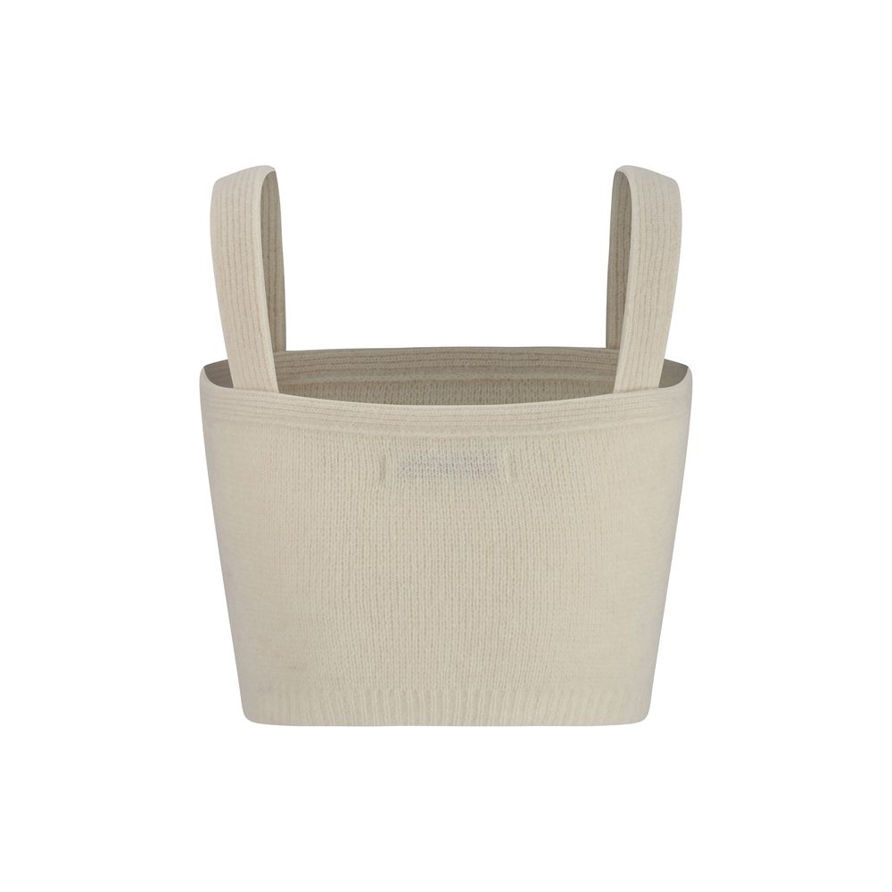Alpaca Wool Top by Alessandra Rich, cropped sleeveless design, geometric neckline, two welt patch pockets on front with contrasting detail, ribbed hem, monochrome pattern, regular fit.