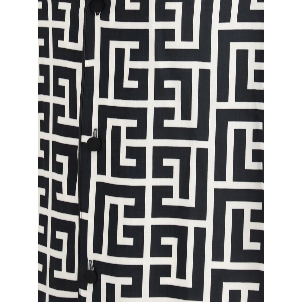 Shirt by Balamin, short-sleeved design with lapels, classic lapels, front button closure, all-over repeated iconic brand logo weave, regular fit.