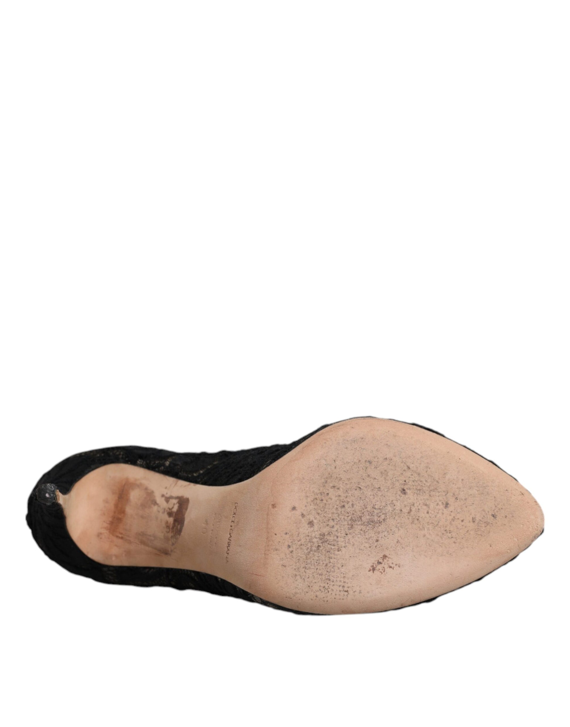 Dolce & Gabbana Black Lace Stretch Heels Mid Calf Boots Shoes