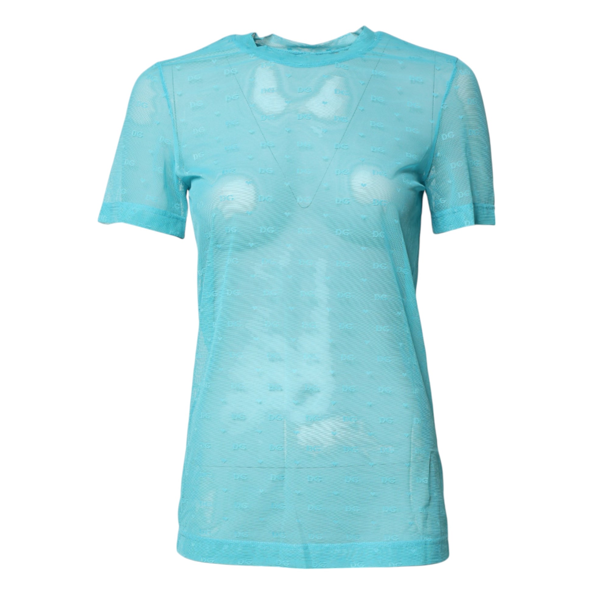 Dolce & Gabbana Blue Nylon See Through Women Short Sleeves Top