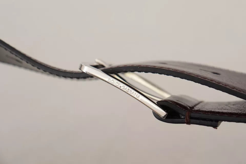 Dolce & Gabbana Dark Brown Leather Logo Engraved Metal Buckle Belt