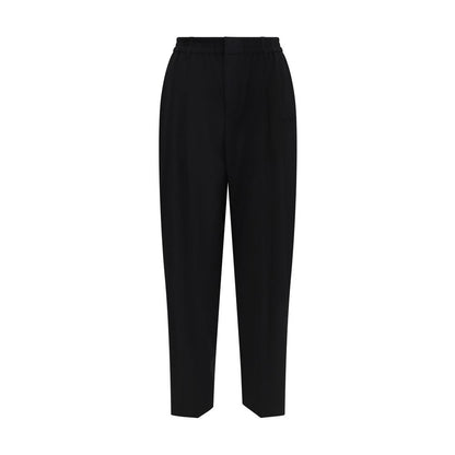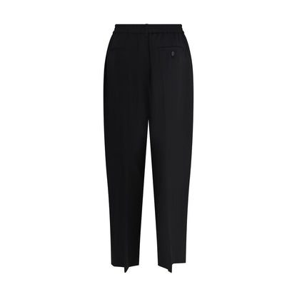 Alexander Wang’s Oversized Pants are a bold, contemporary style designed for those seeking comfort without sacrificing design. The elastic waistband offers a comfortable and adaptable fit, while the front zipper and hook-and-eye closure adds a practical and functional detail. Side welt pockets and back pockets, also welt and buttoned, lend a sophisticated touch and minimalist aesthetic. The brand’s iconic signature tone-on-tone stitching on the front adds a distinctive yet understated element.