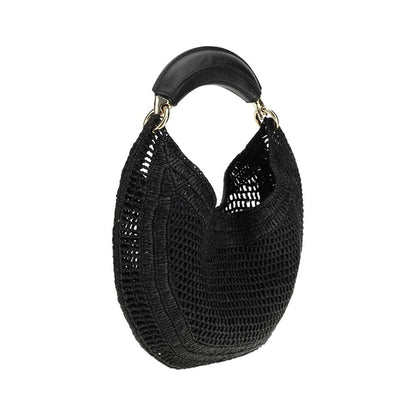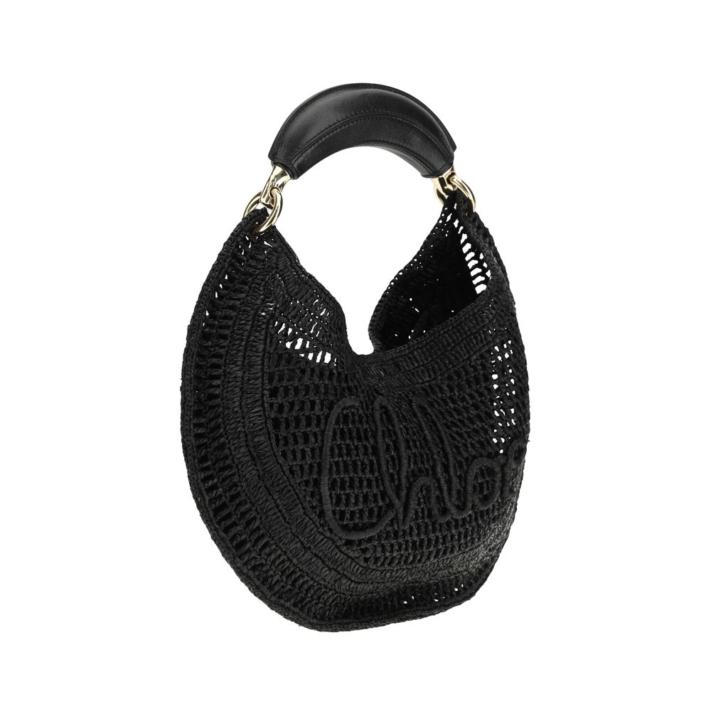 The Summer Banana Shoulder Bag by Chloé is an accessory with summery, bohemian appeal, perfect for adding a touch of coolness and style to your everyday looks. Made of raffia, the bag sports a light and natural design that is ideal for warmer seasons. The sturdy, single buffalo handle provides comfort and convenience, while the snap-button closure ensures security and ease of use. An elegant embroidery on the front panel, embellished with the brand’s signature, lends a distinctive and sophisticated detail. This bag is the ideal accessory for those seeking a mix of casual elegance and craftsmanship, perfect for any summer occasion.