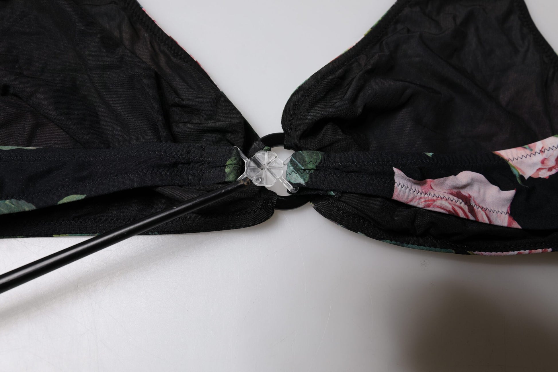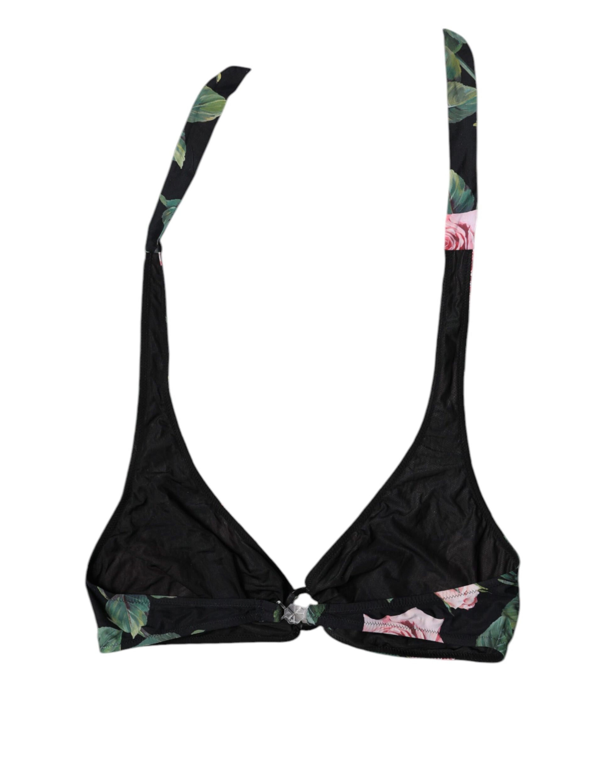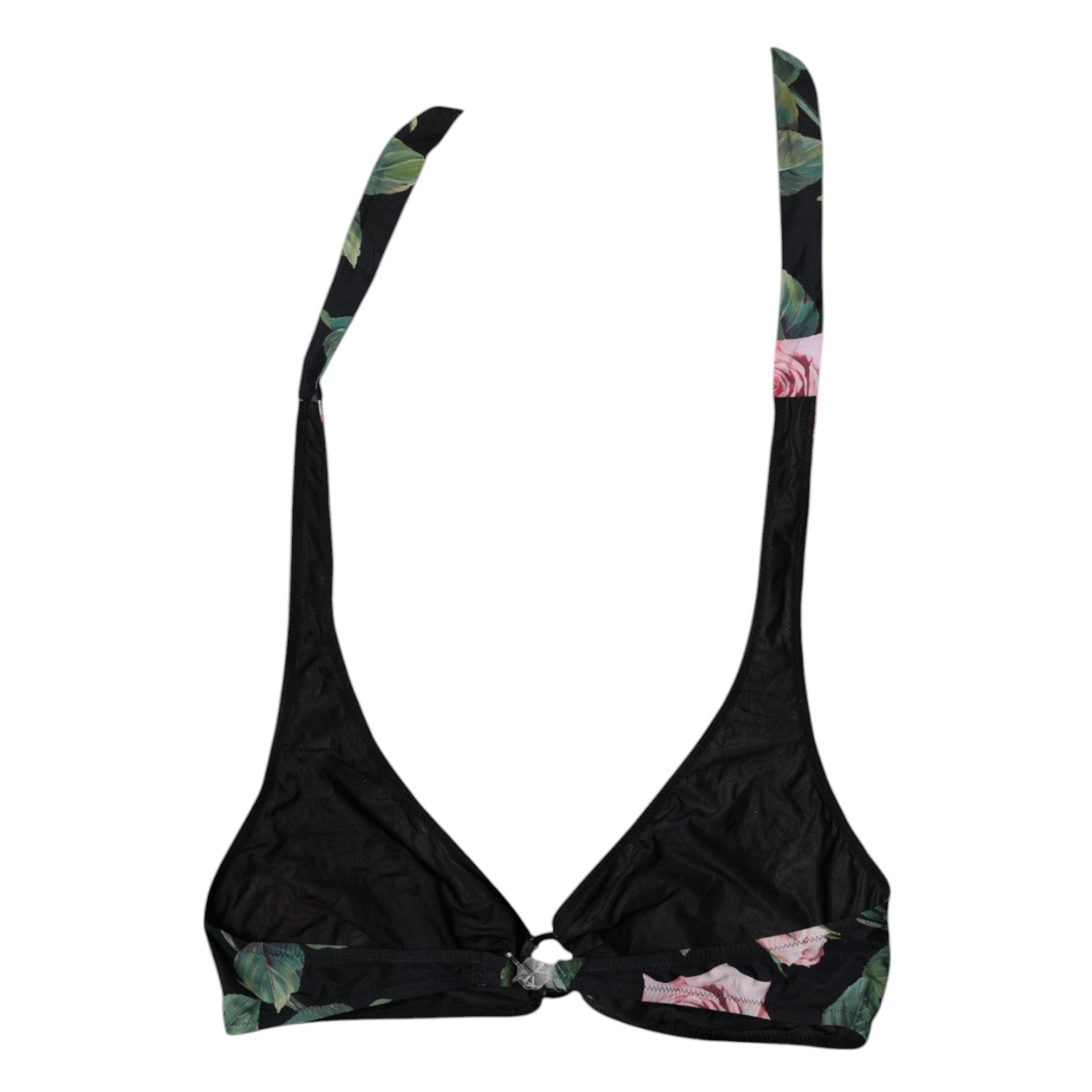 Dolce & Gabbana Black Lily Halter Beachwear Bikini Top Swimwear