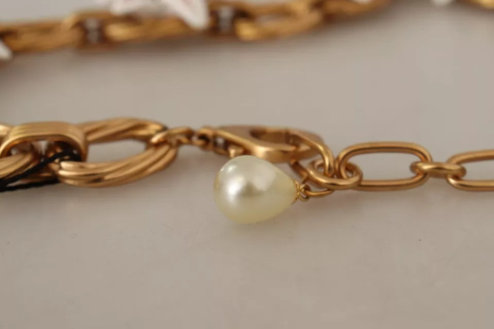 Dolce & Gabbana Gold Chain Lilium Floral Choker Statement Jewelry Necklace