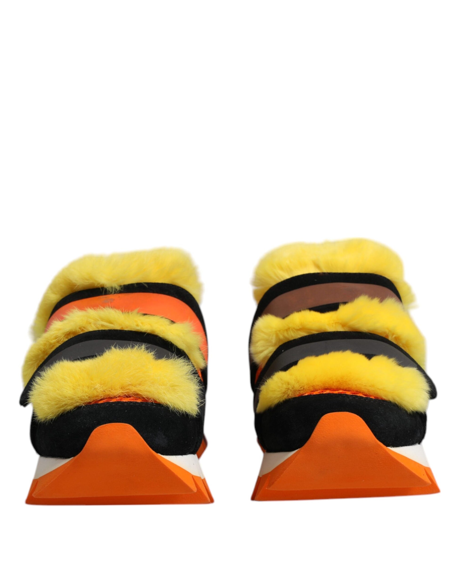 Dolce & Gabbana Multicolor Fur Embellished Sneakers Shoes