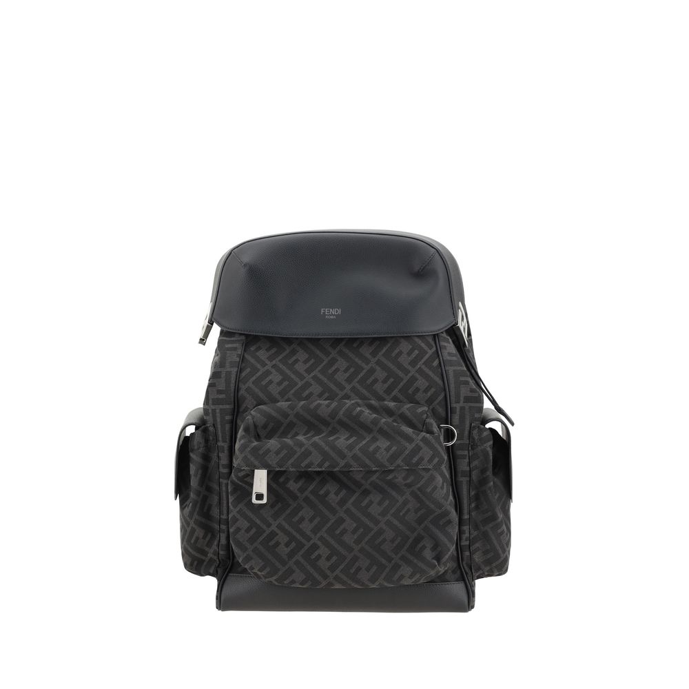 The Fendi Drive Backpack is a functional and elegant accessory, designed for those seeking practicality without sacrificing style. The adjustable and padded shoulder straps ensure optimal comfort, while the top handle allows it to be carried by hand. The closure is ensured by a top flap and an internal drawstring, offering security and practicality. A zipped pocket on the front and two flap slit pockets on the side panels add extra space for personal items. The design is characterized by the iconic FF jacquard weave all-over, which gives a distinctive and recognizable look. Leather details complete the look, while the single internal compartment offers adequate capacity for essentials. This backpack is perfect for an urban and sophisticated look, ideal for any occasion.