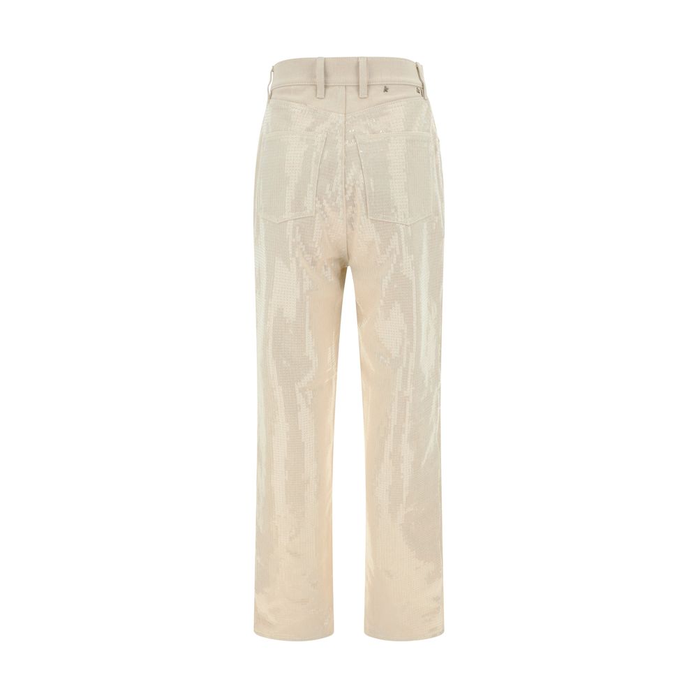 Cotton Denim Pants by Golden Goose, five-pocket straight style, front button and zipper closure, waistband loops, all-over appliqué bright sequins.