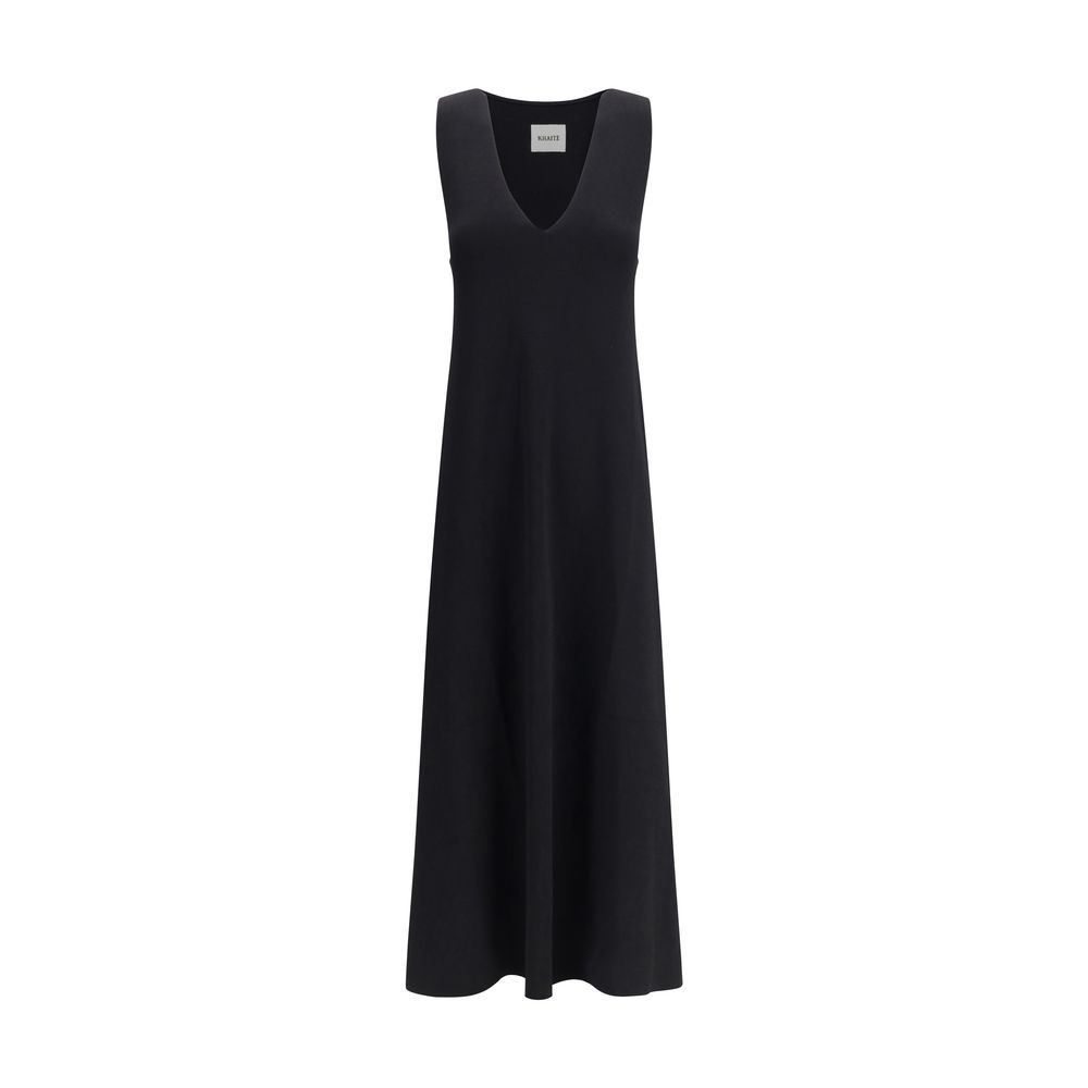 The Keran Dress by Khaite is a sophisticated and minimalist piece, featuring a sleeveless design that offers a sleek and cool silhouette. The V-neck on the front adds a sensual and refined touch, while the monochrome pattern makes the dress versatile and easy to match with various accessories. Perfect for a simple yet classy look, ideal for formal occasions or evening events.