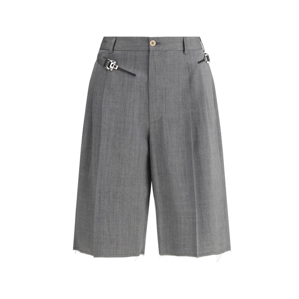 Magliano’s Wool Shorts are an elegant and sophisticated garment featuring a front zipper and button closure. The waistband features belt loops, offering the ability to customize the fit. Two side welt pockets and two back welt pockets with a flap and pearl button add a touch of class and functionality. Side-applied buckle details and a raw-cut hem complete the design, giving it a modern and sophisticated look.
