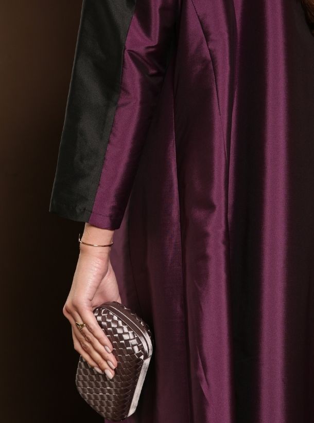 Mesmerizing Opulence, The Black and Purple Curved-Shaped Double Pleated Abaya.