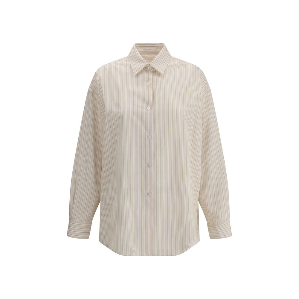 The Row’s striped Caster Shirt is a minimalist and refined garment. With a classic collar and front button closure, it features a clean silhouette and understated design. The subtle stripes add a touch of understated elegance, making this shirt perfect for a stylish and versatile look.